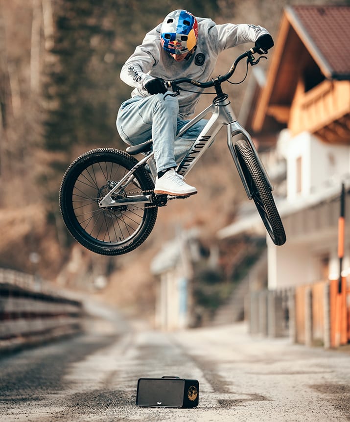 Finally, really turn up the heat! Whether at a meeting with friends in the park, as motivation for the next stunts or for the party afterwards. The BOOMSTER Fabio Wibmer Edition is the perfect companion: powerful sound, enduring and just as unconventional as Fabio himself.