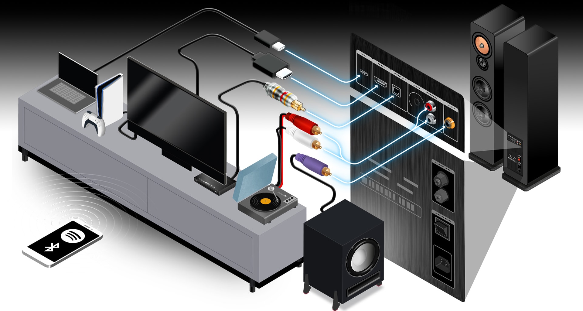 One cable, full sound: connect your active floorstanding speakers via HDMI directly to your TV and enjoy full sound for sports, shows, and movies. No amplifier, no fuss.