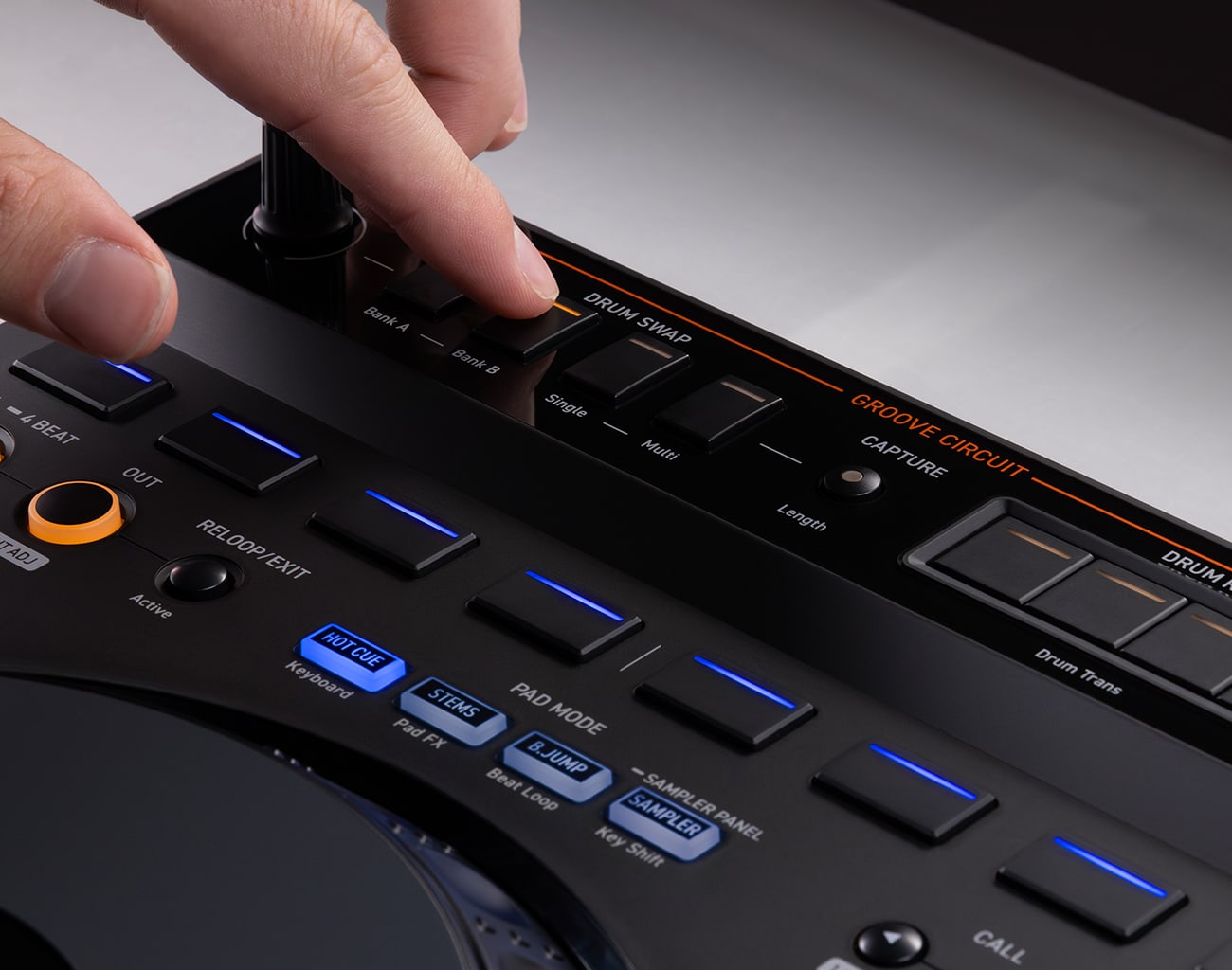 With the DDJ-GRV6 controller and its new, innovative groove circuit feature, you can create breathtaking creative mixes and give them your personal touch with quick turns.