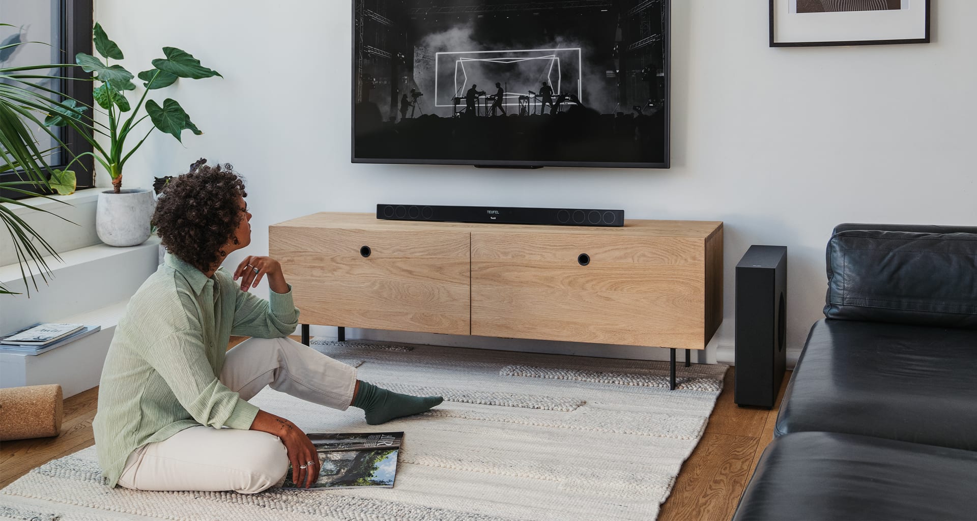 Small, practical, biting. That's the new T 6 subwoofer from Teufel. It masters all tasks with aplomb in small rooms or listening areas. Whether blockbusters, gaming sound or double bass. Ready to pump up the bass?