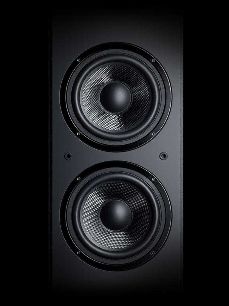• Equipped with a 3-way system including tweeter with phase plug and waveguide, and kevlar midrange drivers for crystal-clear highs and rich mids.