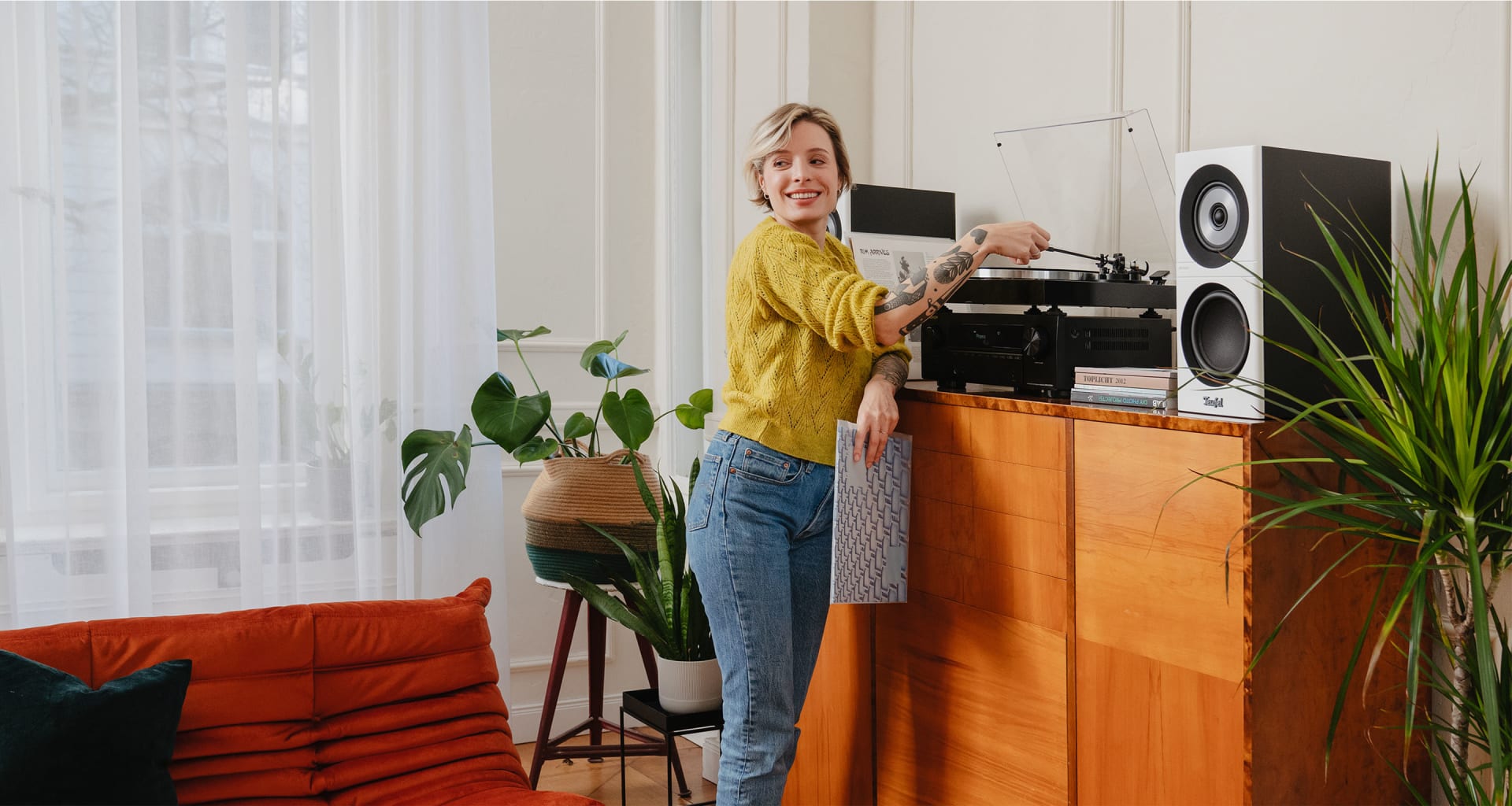 In addition to its high-quality Audio-Technica cartridge, the DT 500 USB record player from DUAL impresses with useful extras such as an integrated preamplifier and a USB connection for digitising vinyl. The DT 500 USB is an ideal play partner for Teufel complete systems.