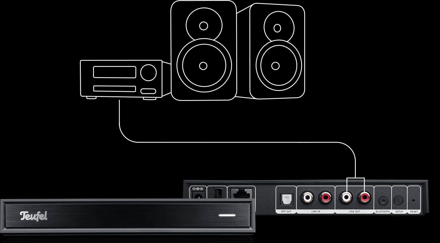 • The Teufel STREAMER (not compatible with Teufel Home Devices): stream using the Teufel Raumfeld App for TIDAL, SoundCloud, TuneIn internet radio, as well as directly from your smartphone and with a USB/NAS