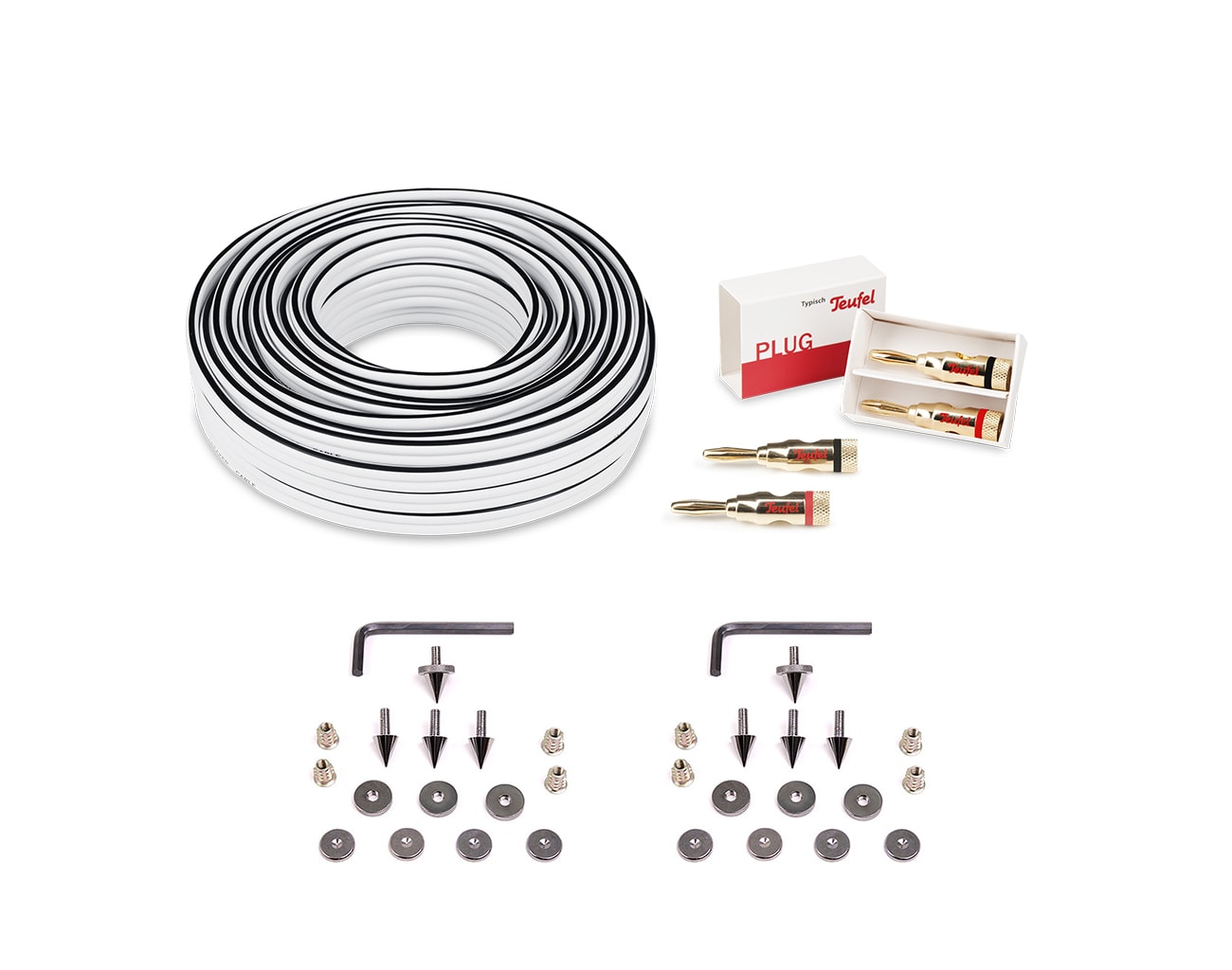 The cable set in the "performance" category is recommended for high-end stereo systems so that the full abilities of the loudspeakers can be expressed without compromise. This cable set contains everything you need to operate a pair of stereo speakers.