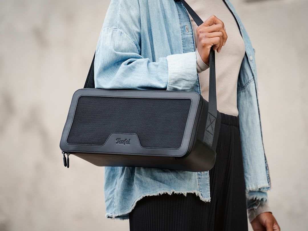 The BOOMSTER BAG is a real eye catcher. It mimics the design of the BOOMSTER speaker and comes emblazoned with Teufel's classic logo on the front.