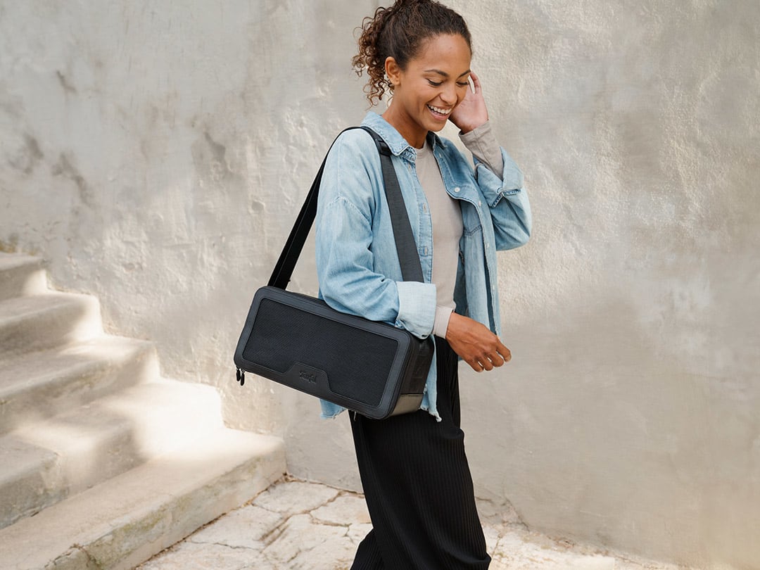 In the park, on the beach, or at festivals: the rugged and stylish BOOMSTER BAG protects your BOOMSTER against light impacts, dirt, and dust