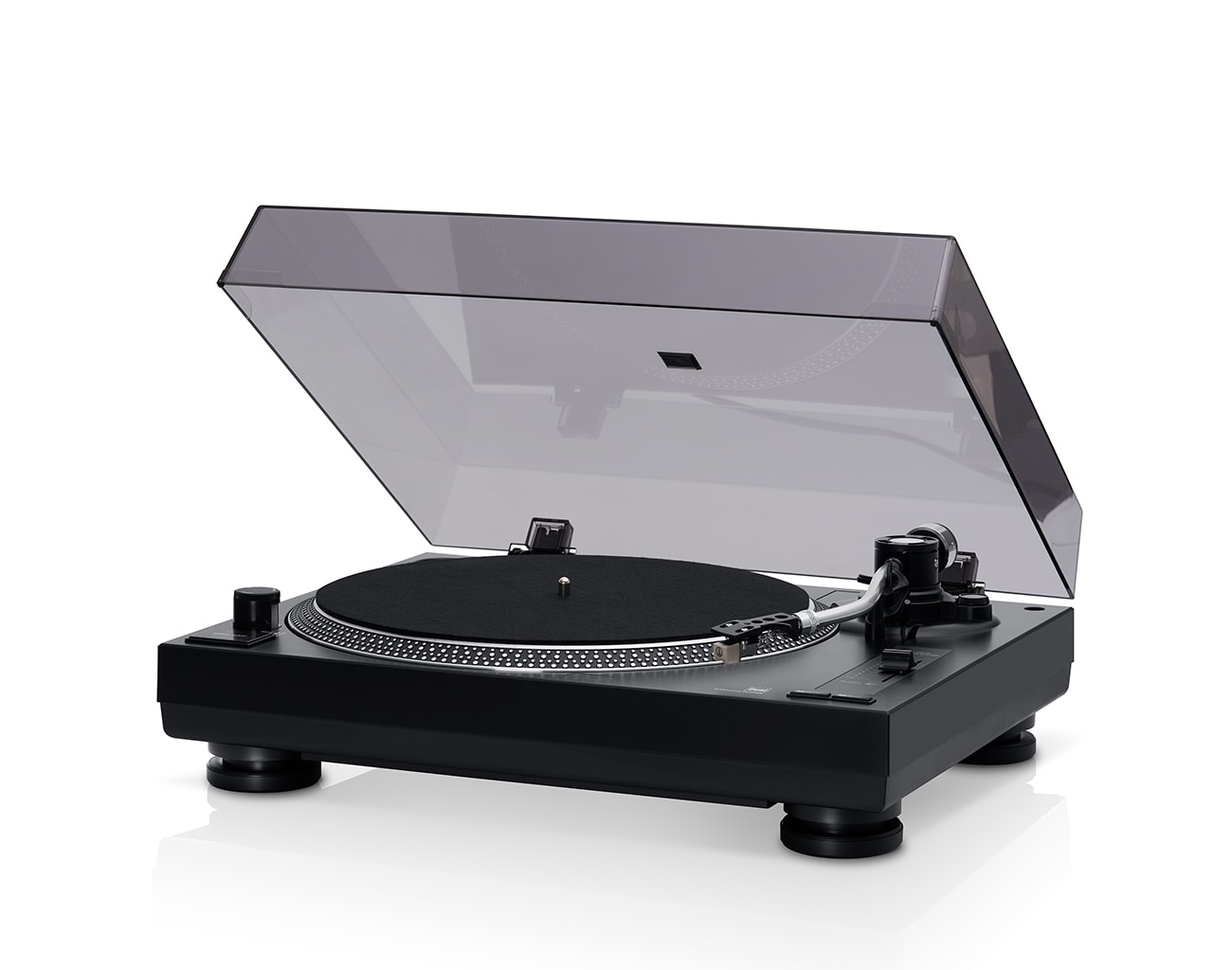• DUAL DT 250 USB belt drive, high-quality AT 3600L magnet cartridge, S-shaped high-end tone arm with adjustable tracking force, built-in toggleable phono amplifier