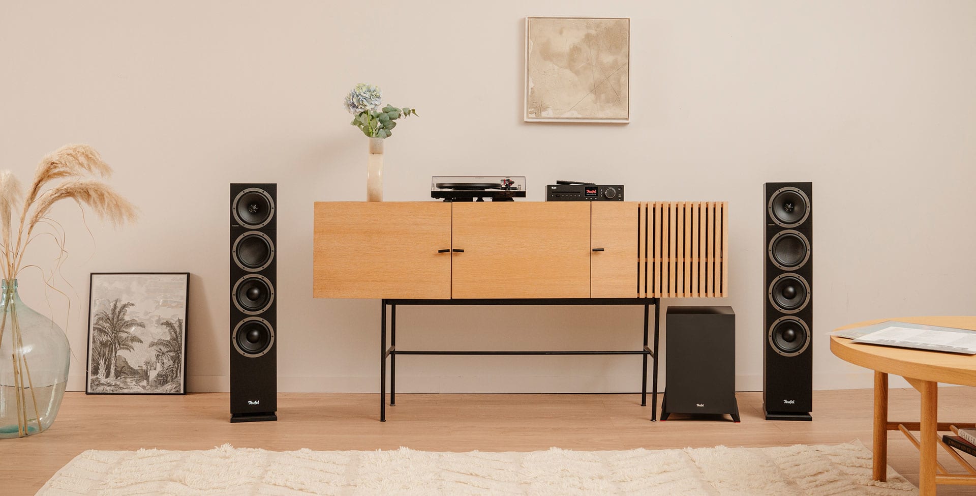 Our speakers and receivers are perfectly tuned to one another. Experience silky trebles, a warm natural midrange, and Teufel's signature deep, powerful bass.