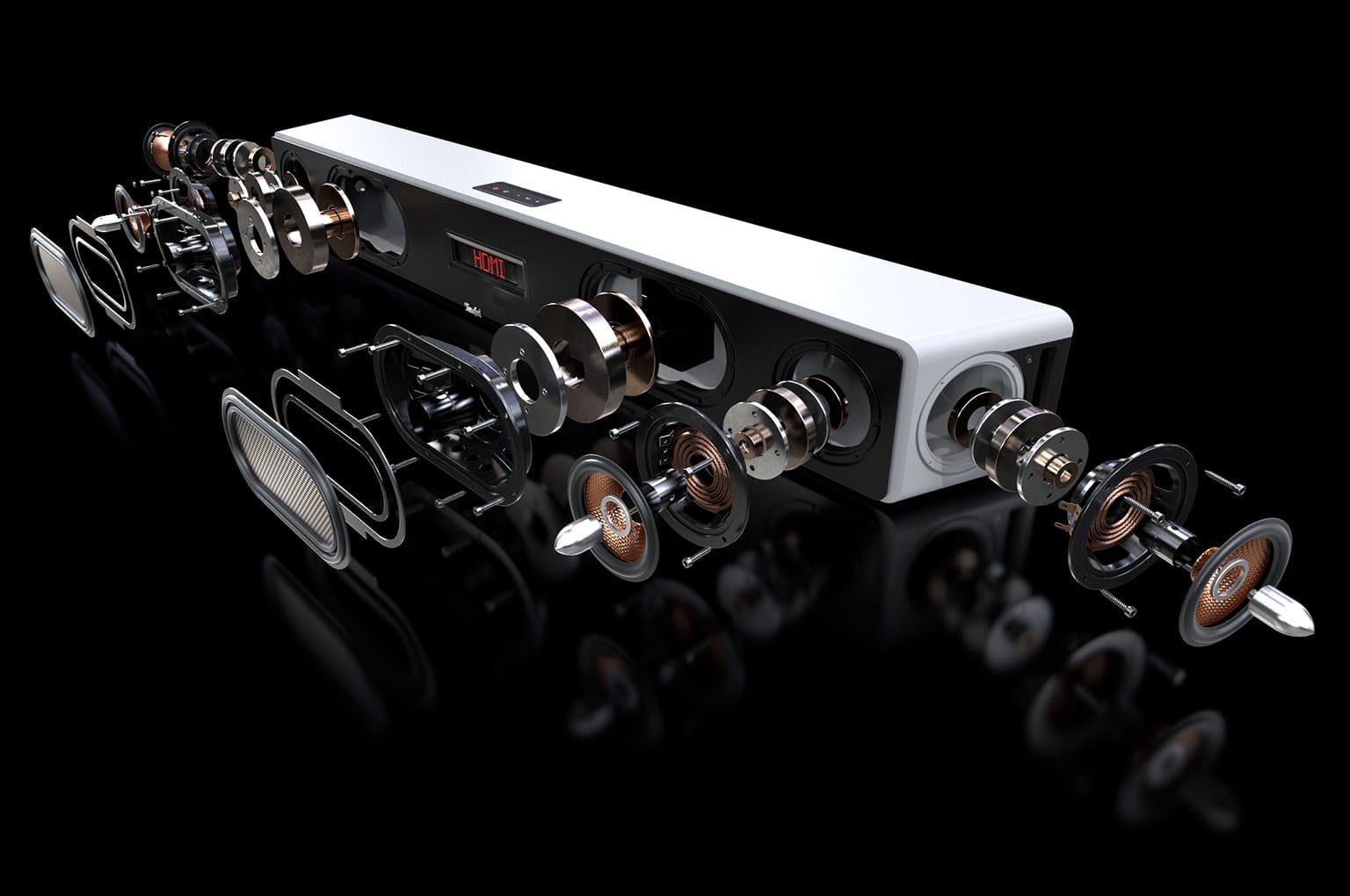 The Klippel-optimized high-performance full-range 3.5-inch drivers with Kevlar diaphragms were borrowed from the ULTIMA series to guarantee highly dynamic sound output for complex film dialogue and sound effects. The phase plug provides impedance matching for the diaphragms, guaranteeing faithfully synchronized audio.