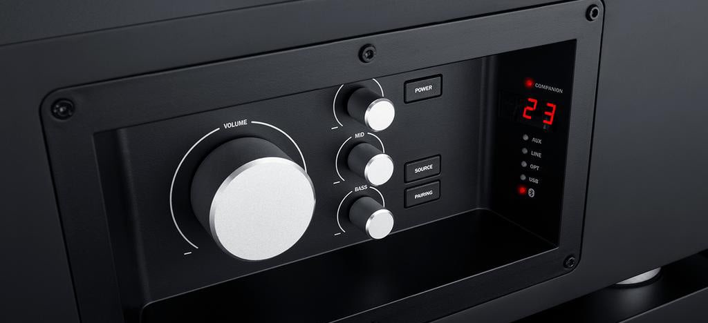 Control the volume, dynamics, and input type from the sturdy side panel to get an even better feel for the music.