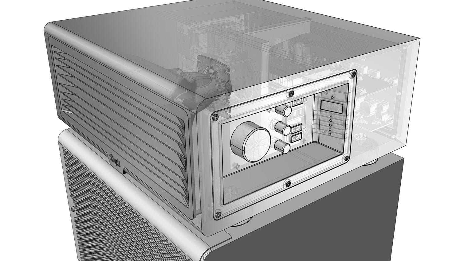 • High-quality interface panel with display, USB sound card, and remote control