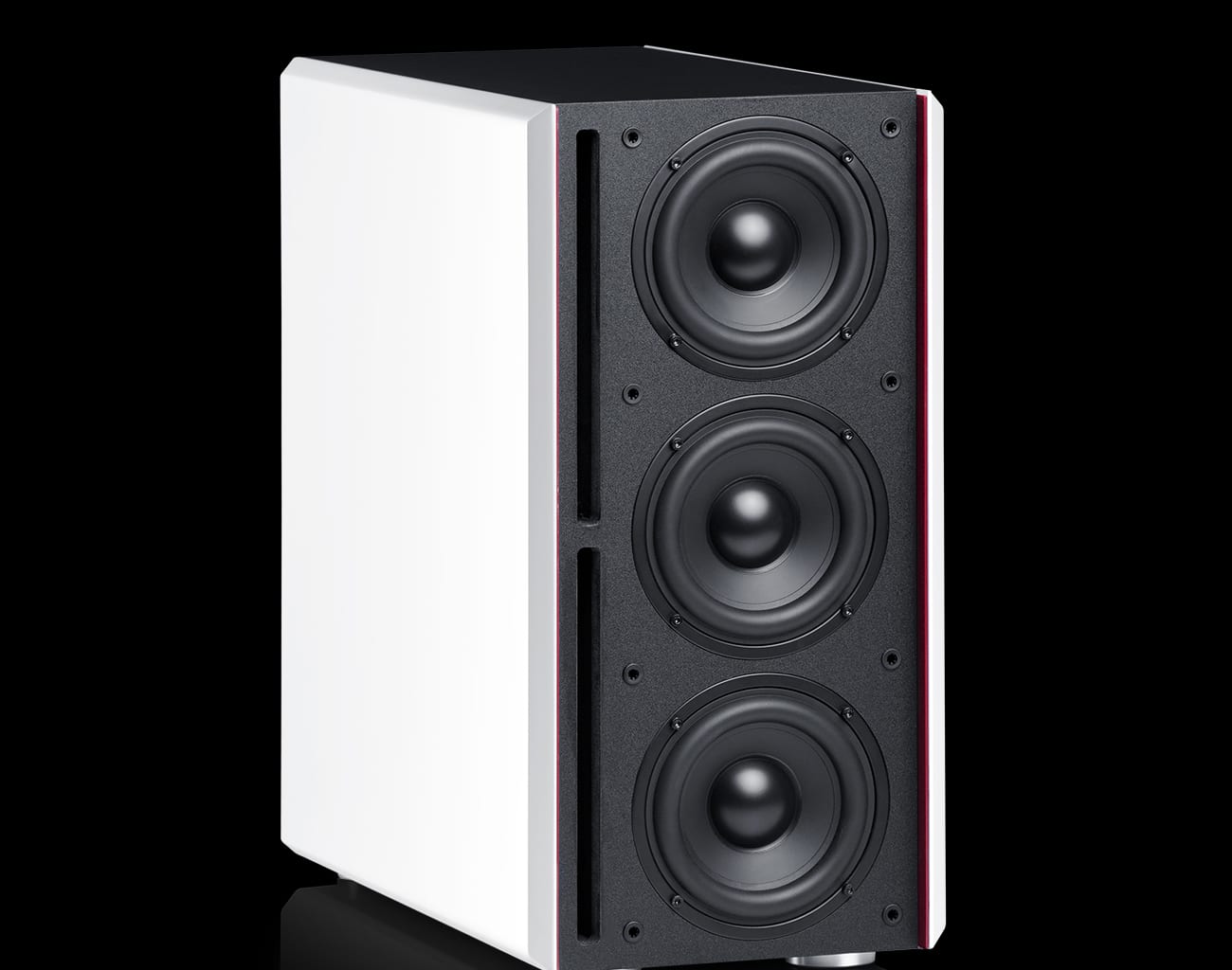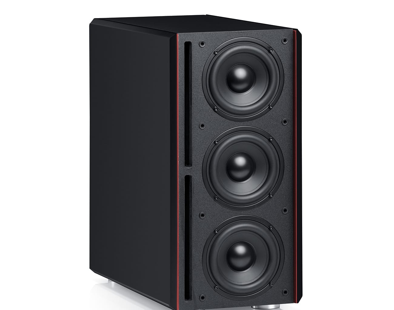 A slender THX subwoofer with 3  X 130 mm woofers - each with an enormous 8 mm of excursion - produces ultra deep bass all the way down to 35 Hz.