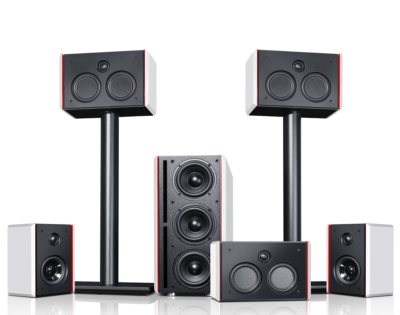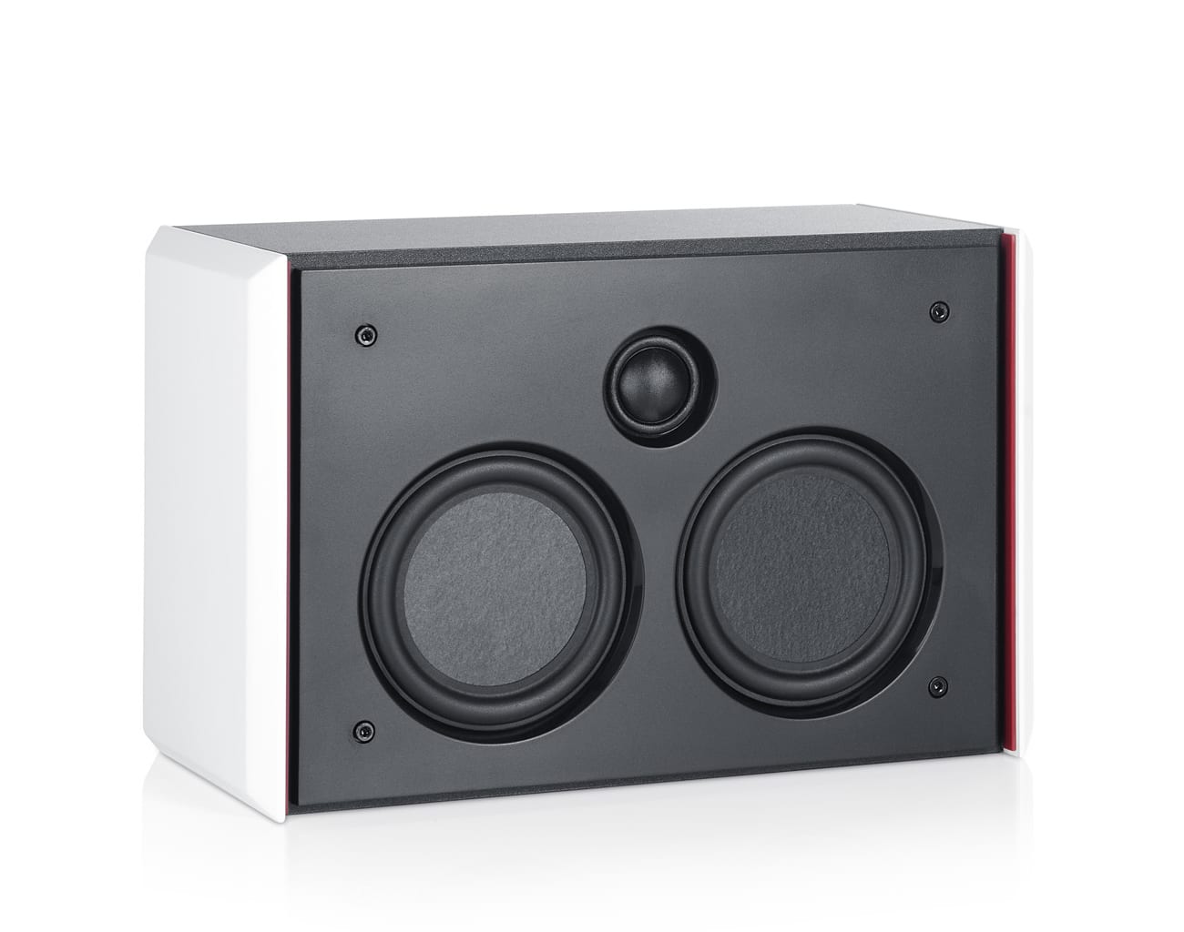 The lacquered side panels provide additional stability and minimise cabinet resonance. The contrast finish is subtly supported by red plastic inlays in the shadow gaps. The speakers can be easily attached to the wall with the integrated keyhole holder. With the AC 7500 SM wall mount bracket, the speakers can also be swivelled horizontally. Thanks to its efficient speakers, the System 4 also plays superior quality sound even with inexpensive AV receivers (a THX license is not necessary).
