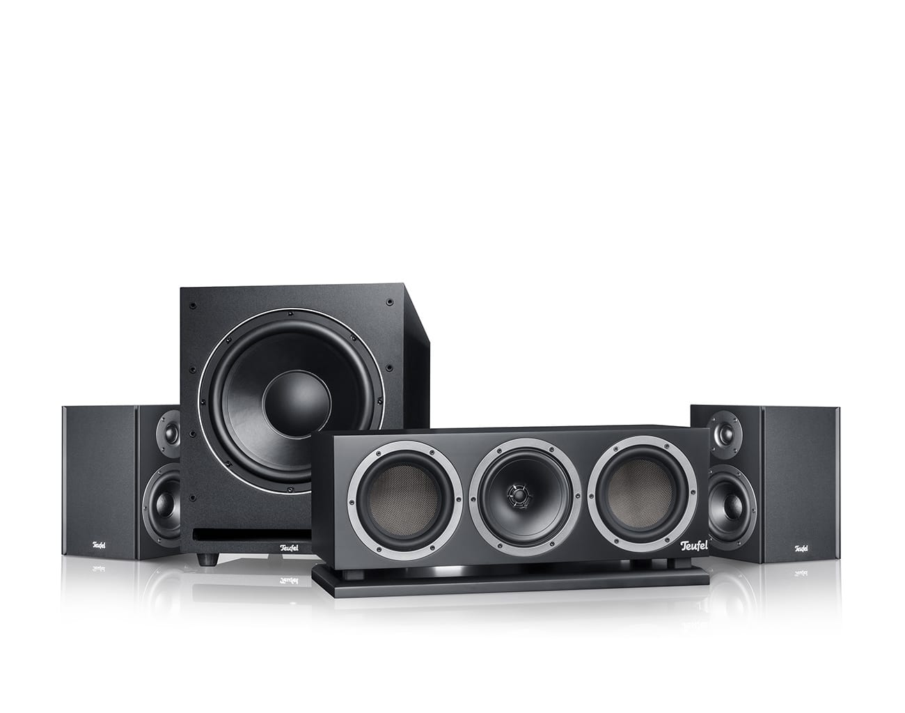 Dipoles rear speakers simulate the sound image of a movie theater, where the surround channels are each produced by multiple speakers. The non-directional sound radiation of the dipoles to the front and rear gives the sound an indisputably authentic feeling. Two woofers and tweeters ensure tight sound across the entire frequency spectrum down to the subwoofer.